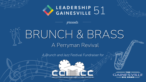 Leadership Gainesville Class 51 is proud to partner with The Cotton Club Museum and Cultural Center to host a unique fundraiser that blends rich cultural heritage with vibrant local music. We invite you to be a part of Brunch and Brass, a community celebration designed to help raise $200,000 for the renovation of the historic Perryman Building- a former grocery store and community anchor in the heart of Gainesville.