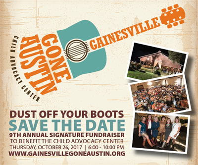 On Thursday, October 26, take a trip with us to Austin at the stunning Santa Fe River Ranch in support of the Child Advocacy Center for the 9th Annual Gainesville Gone Austin — an amazing night of food, drink, live music, silent auction and entertainment to celebrate the CAC and reflect on the impact we’ve all had on the thousands of abused, neglected, trafficked or traumatized children in our community. For further details please visit our event website at www.gainesvillegoneaustin.org or call 352-376-9161.