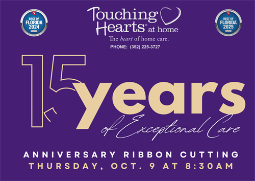 In partnership with the Greater Gainesville Chamber of Commerce, we will host a Ribbon Cutting Celebration to honor this milestone. For over a decade and a half, Touching Hearts at Home has been dedicated to serving seniors and adults with disabilities with integrity, dignity, and award-winning care across ten counties in North Central Florida.